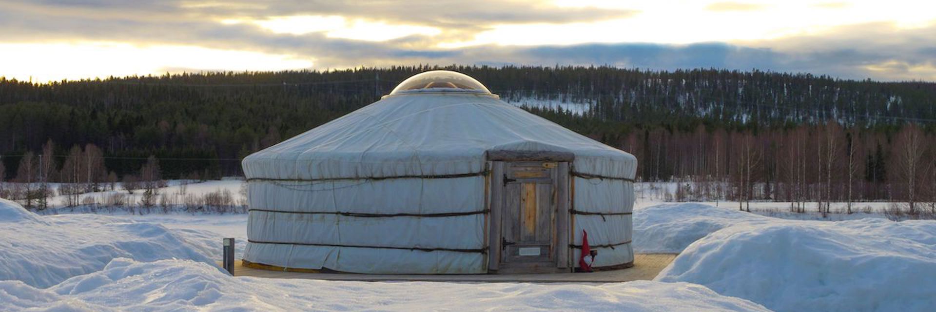 שוכן על גדות נהר אונאסיוקי, יורט דיסטריקט מציע חוויית גלמפינג אינטימית ביורטים מאובזרים הכוללים עיצוב נורדי אלגנטי, מצעים מפנקים וחלונות תקרה פנורמיים לתצפית על השמיים – כולל הזוהר הצפוני בלילות הקרים.