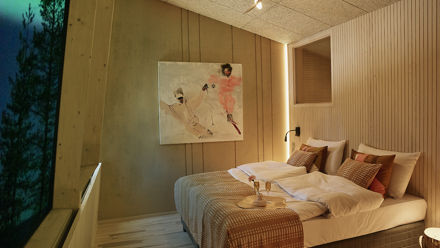 אפשרויות האירוח כוללות סוויטות אורורה אלגנטיות עם חלונות מהרצפה עד התקרה וסאונה פרטית, לצד בקתות סקנדינביות משפחתיות עם שני חדרי שינה, מטבח מאובזר ואח עצים חמים – שילוב אידיאלי לזוגות או משפחות המחפשות נוחות מודרנית וגמישות.