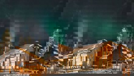 סוויטות ובקתות סקנדינביות מסוגננות עם סאונה, אח ונוף ליער – בלב כפר סנטה קלאוס, לחופשה חמימה ומודרנית בלפלנד.