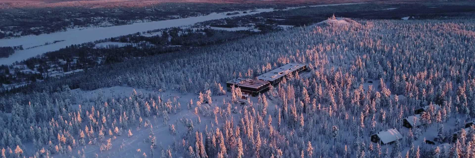 אירוח רגוע על צלע גבעה, עם נוף פנורמי, חדרים בעיצוב נורדי ומסעדת שף המשקיפה על רובניימי והיער הארקטי הסובב.