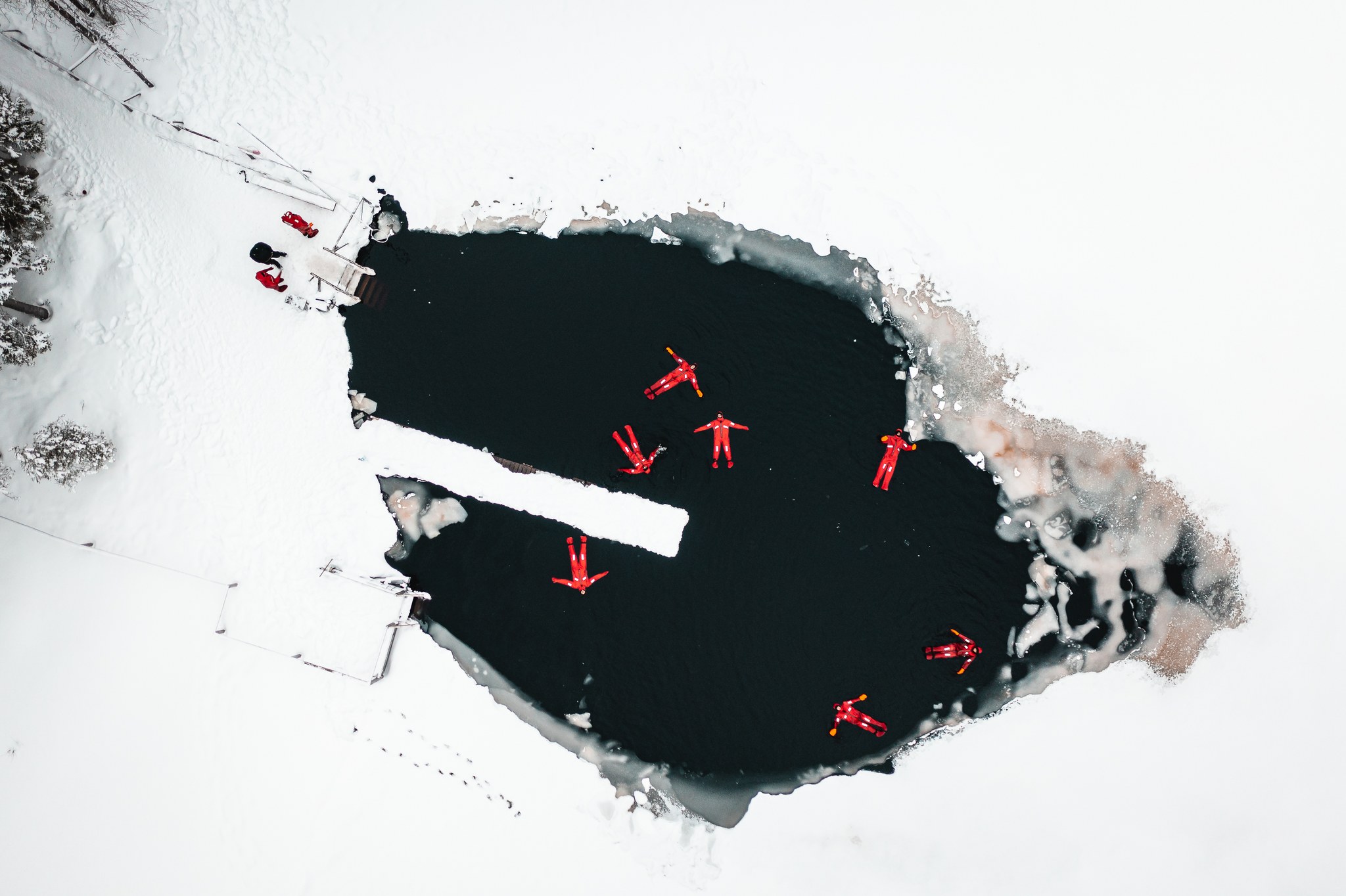 Ice swimming is the traditional Finnish approach. You enter the water directly, usually as part of a sauna session, and many locals do it regularly without ceremony. For a first experience, it is important to choose the right place and setting, as stepping into icy water on a frozen lake or river without proper conditions can be dangerous. This is why ice swimming is normally done in places that are prepared for it and familiar to those taking part.