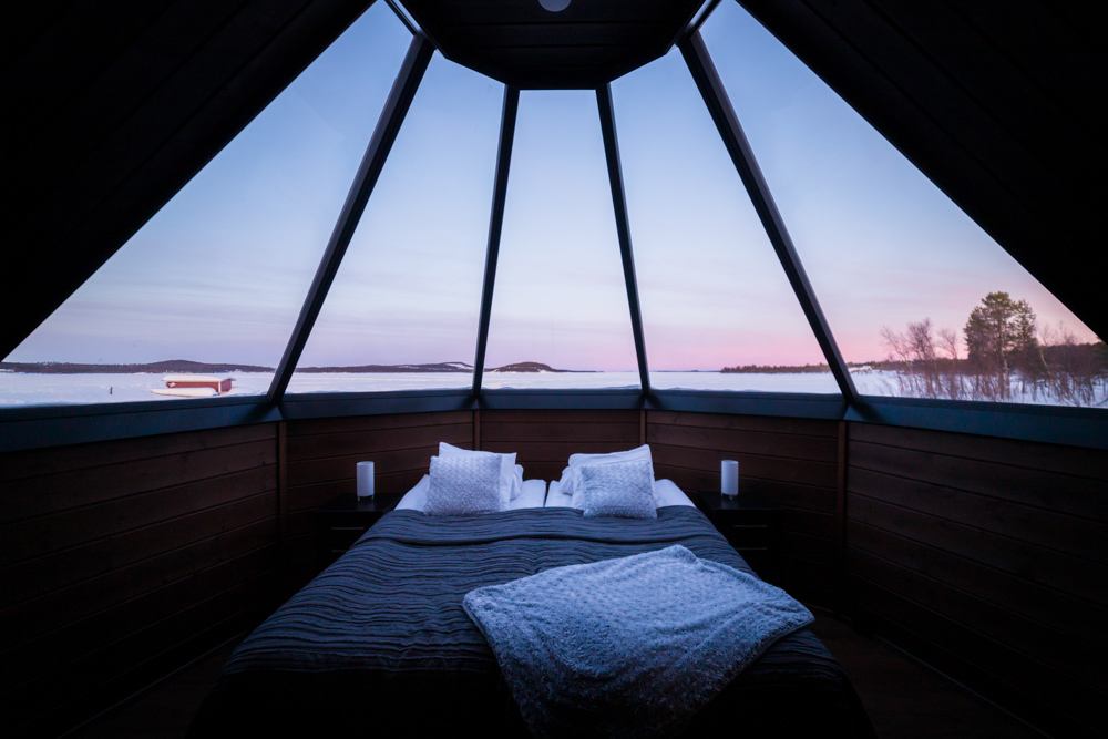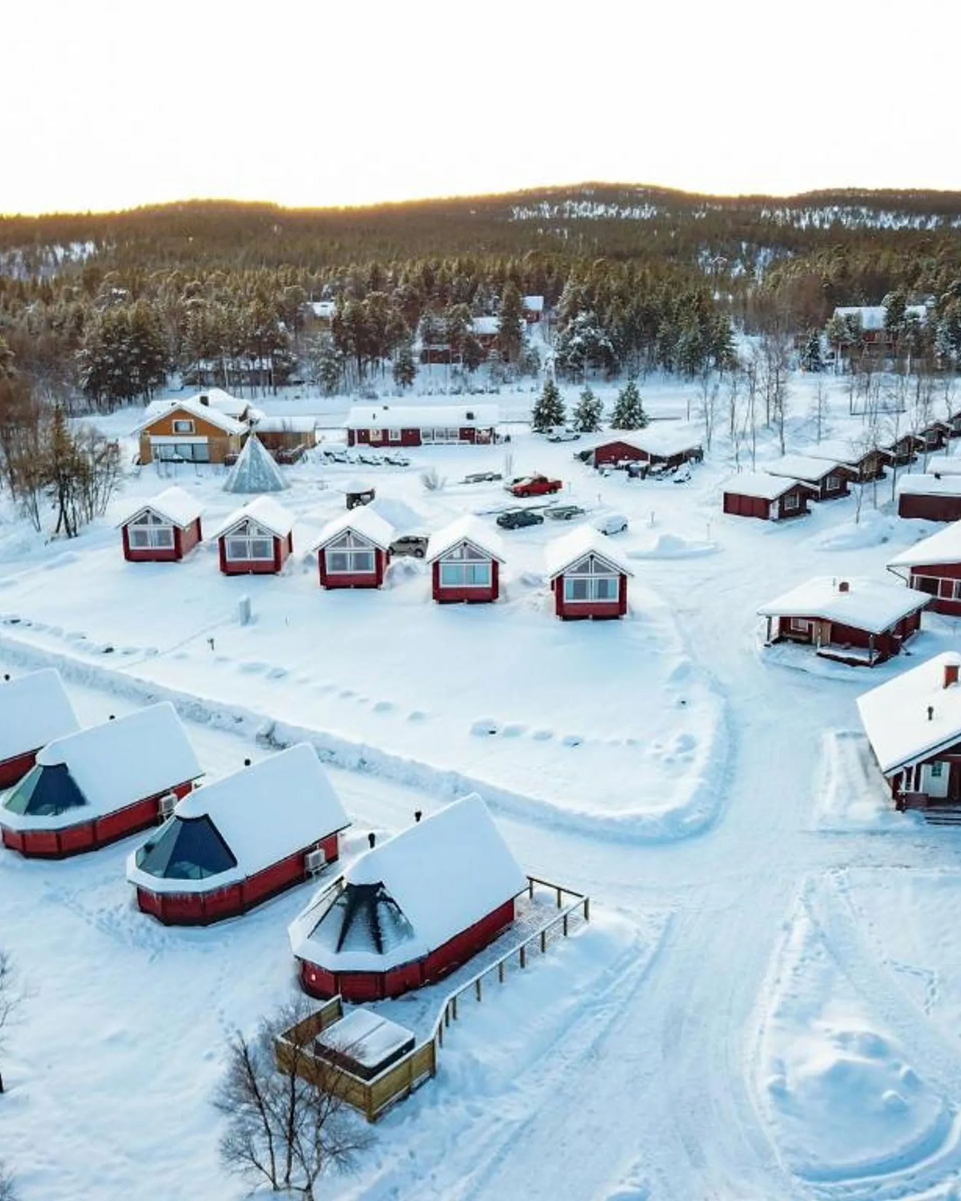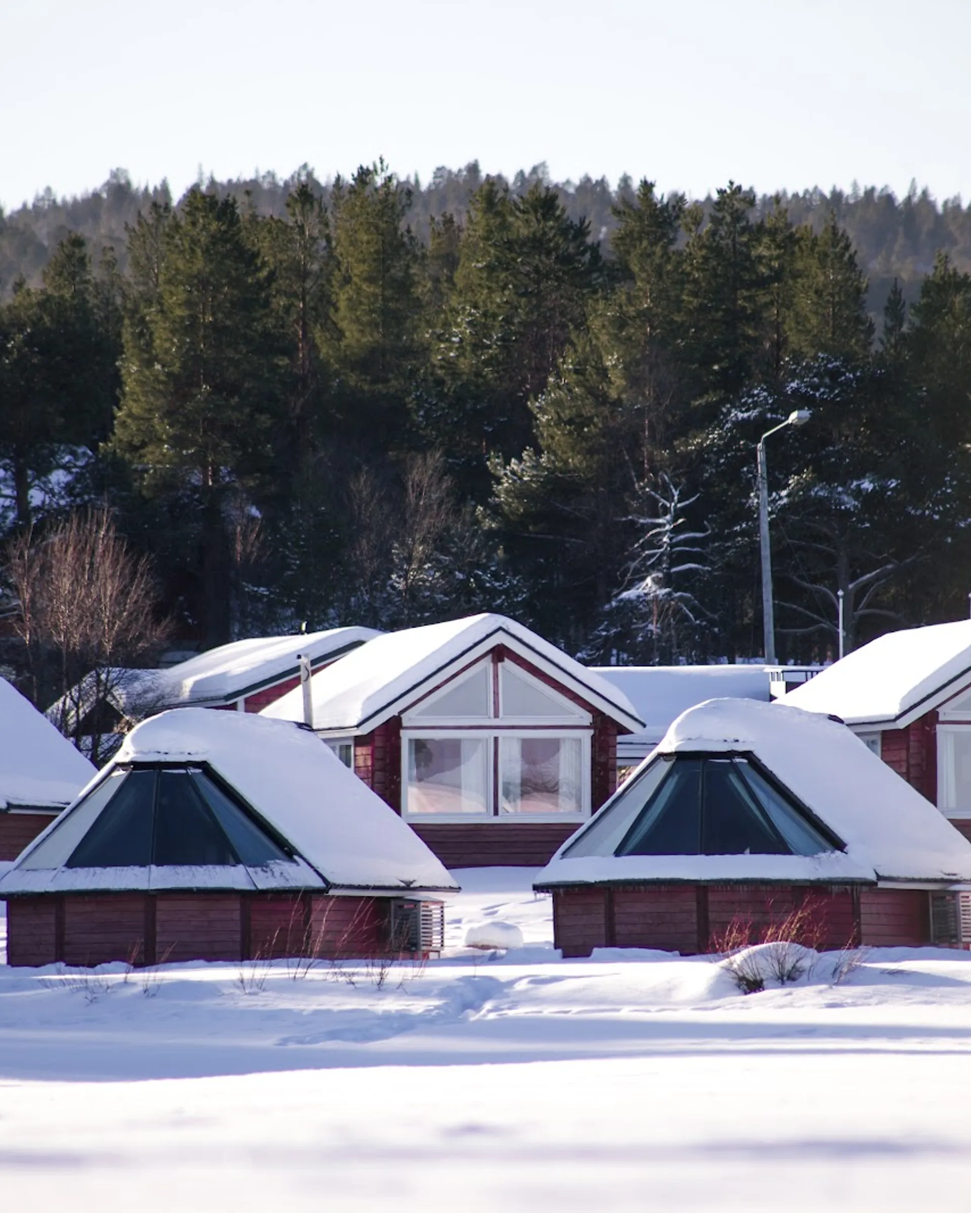 Set on the tranquil shore of Lake Inari, Holiday Village Inari is a laid-back resort that combines the charm of simple lakeside cabins with easy access to Inari’s authentic village life. Guests can choose from a variety of accommodation options: traditional cabins with kitchenettes, comfortable hotel-style rooms, and glass-roofed Aurora Cabins designed for watching the northern lights right from your bed. Many cabins enjoy direct lake views and private terraces.