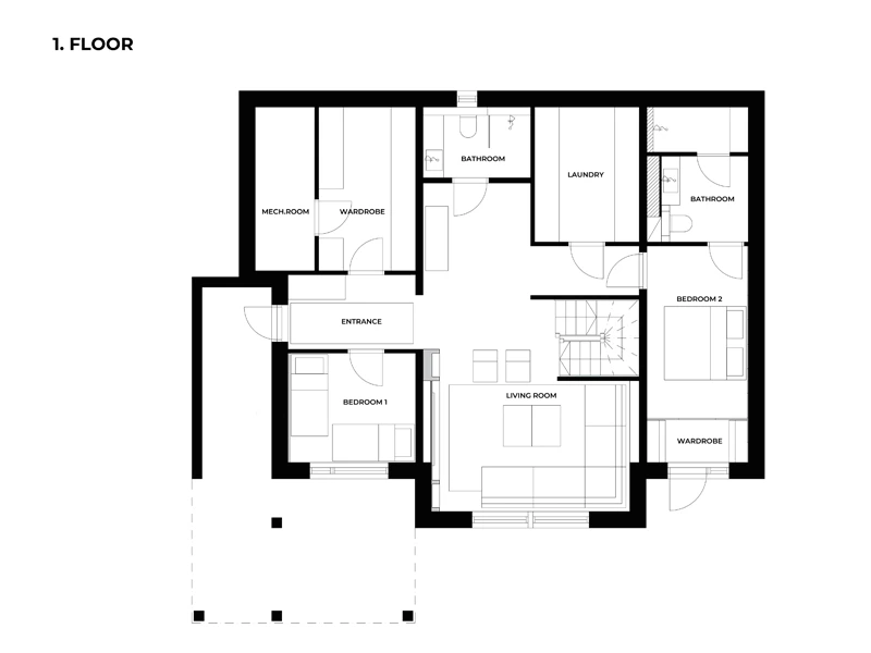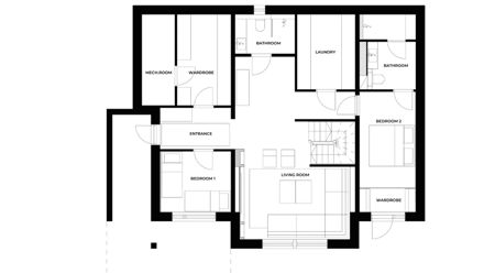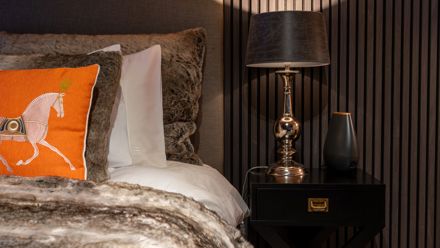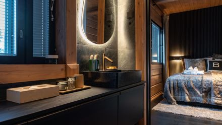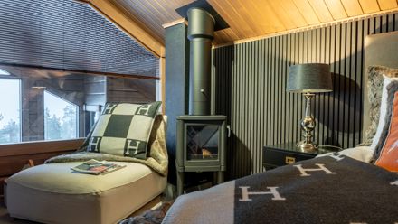 Chalet Utsu is located in the quiet Utsuvaara area, just 10 minutes from Levi village and 15 minutes from Kittilä Airport. The chalet features five bedrooms for up to 10 guests, with four ensuite bathrooms and an additional shared bathroom. High-end amenities include a private sauna, outdoor jacuzzi, fireplace, movie room, and a glass igloo lounge. Interiors are furnished with Unikulma beds, Balmuir textiles, and Bang & Olufsen entertainment systems.