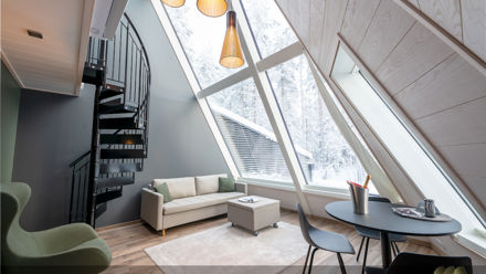 Located steps from Santa Claus Village and a short drive from Rovaniemi Airport, Glass Resort features sleek glass-walled suites with premium Scandinavian design and generous amenities. Accommodation options include 44 m² Glass Appartments, spacious 120 m² Deluxe Glass Appartments, and a 320m² Premium Lodge. All the accomodations are equipped with a private sauna, outdoor jacuzzi, kitchen or kitchenette, and panoramic windows offering Arctic views.