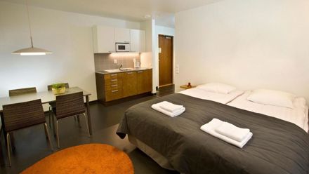 Located just a few minutes from Rovaniemi’s main attractions and Ounasvaara outdoor area, Santa Sport combines practical hotel accommodation with extensive sports and wellness facilities. Rooms are simple and functional, suitable for families, groups, and active travellers who appreciate a clean and convenient place to rest after a day indoors or out. Santa Sport Hotel also offers wheelchair accessible rooms.
