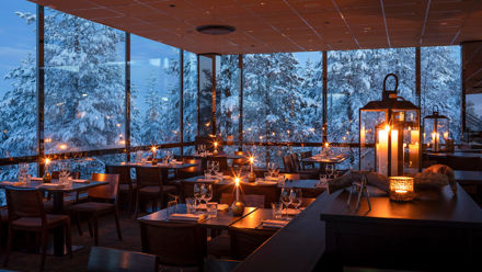 Sky Ounasvaara offers hillside comfort with panoramic views, Nordic-style rooms, and a respected restaurant overlooking Rovaniemi and surrounding forest.