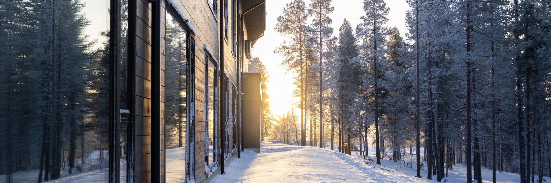 Aurora Collection offers stylish glass-front villas and suites with private saunas or outdoor jacuzzis, all with stunning views of the surrounding fells.