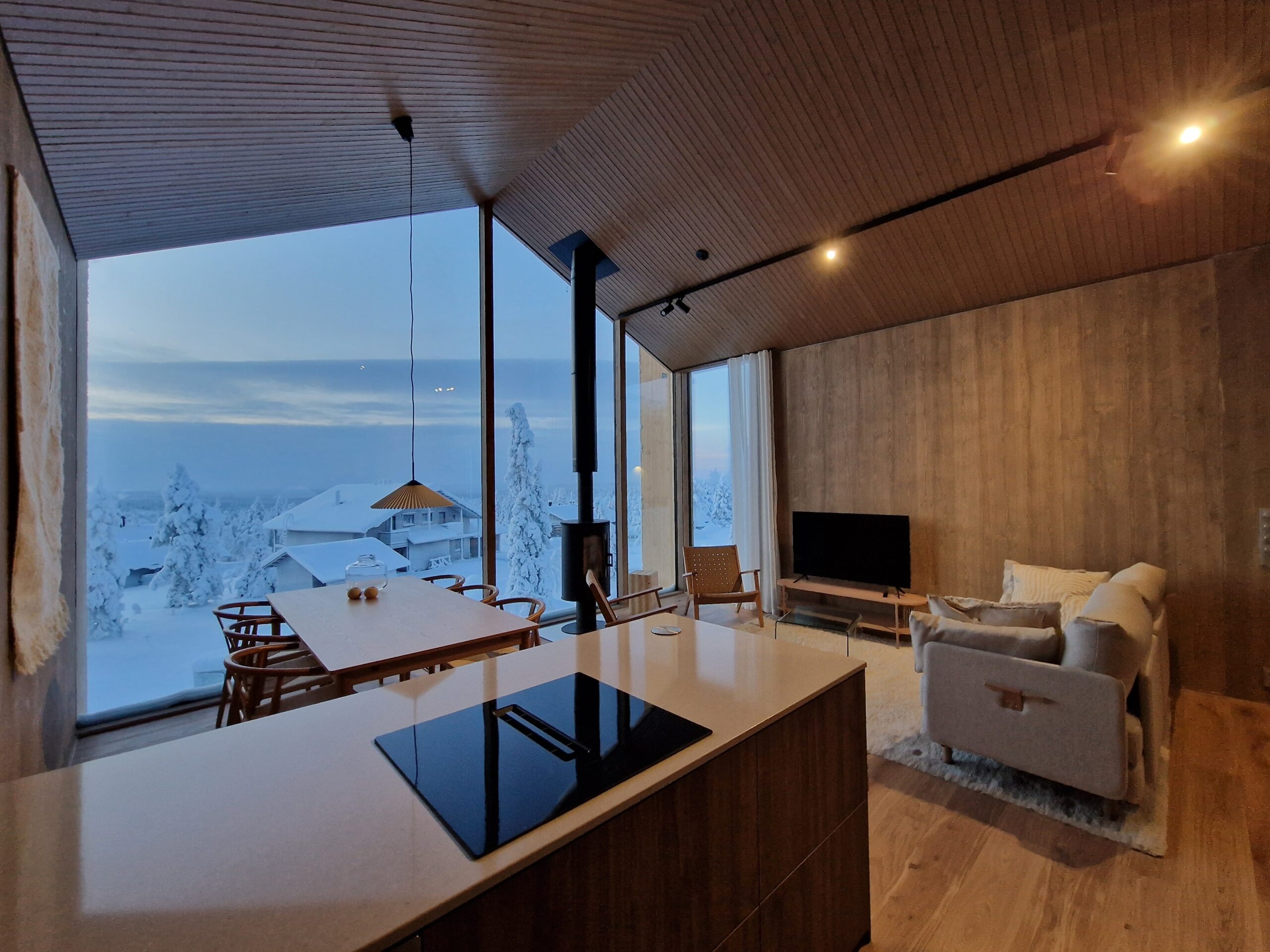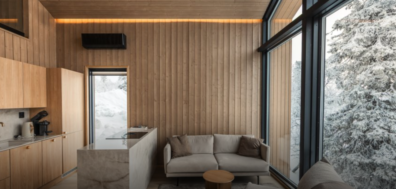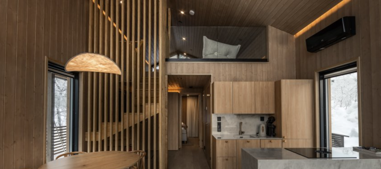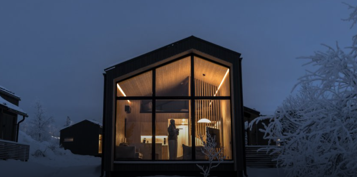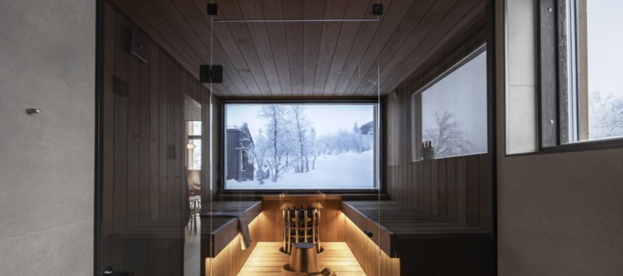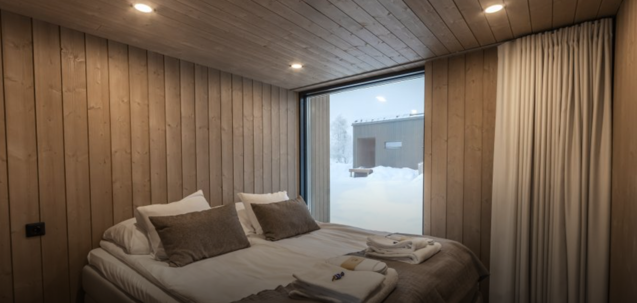 Aurora Collection offers stylish glass-front villas and suites with private saunas or outdoor jacuzzis, all with stunning views of the surrounding fells.
