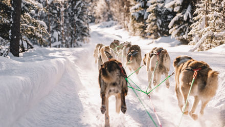 Join a Husky Safari for an unforgettable ride through snow-covered trails. Meet Alaskan Huskies, drive your own sled, and enjoy hot drinks by a campfire. Suitable for all ages, including families.