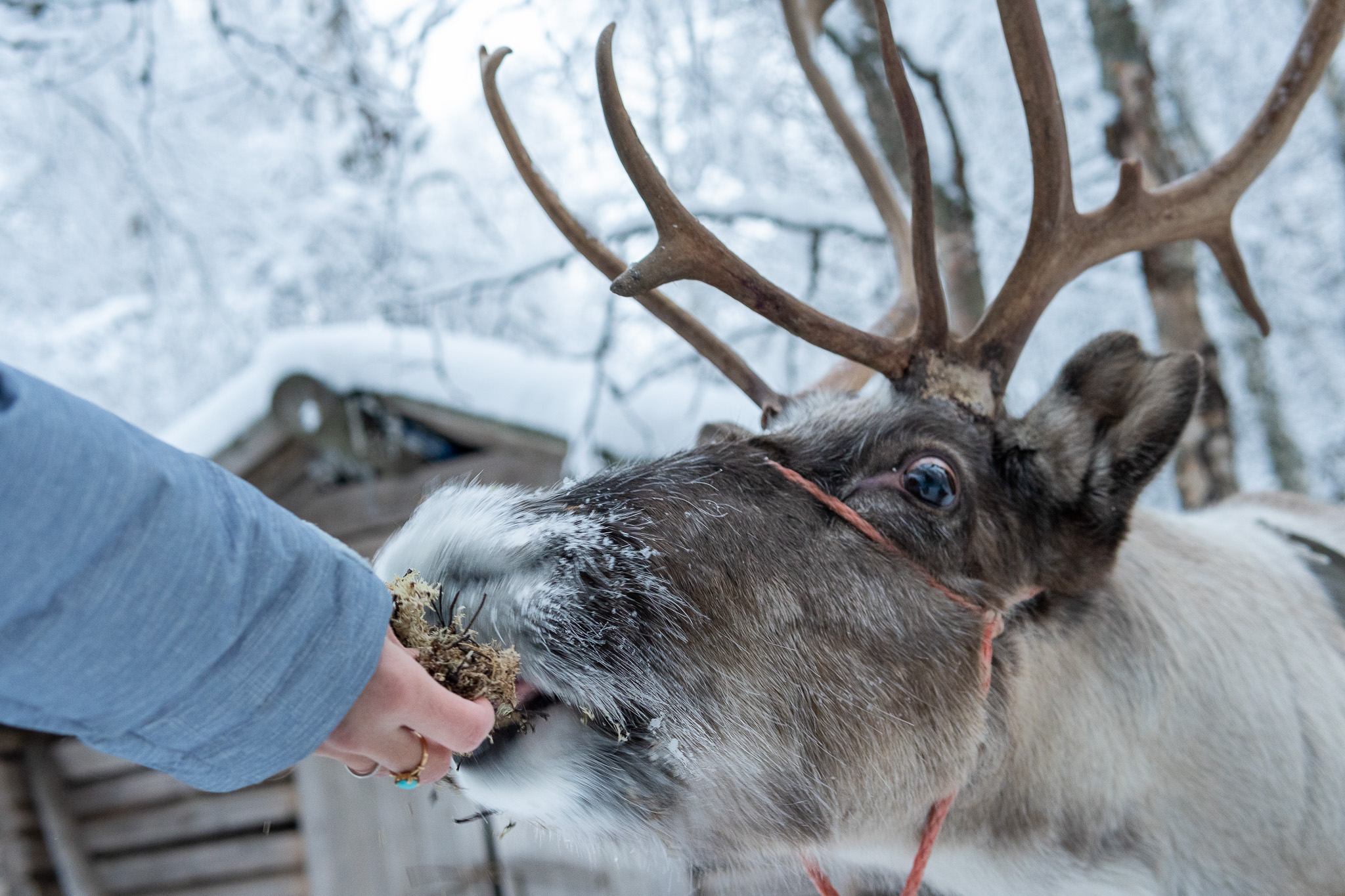 Reindeer Farm Visit in Lapland with sleigh ride and traditional herding stories