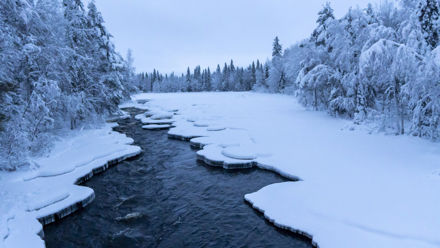 Explore the Arctic Circle Hiking Area on a peaceful winter hike or snowshoeing adventure, where you can enjoy the beauty of Lapland’s snowy forests, frozen rapids, and vast wilderness.