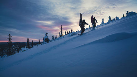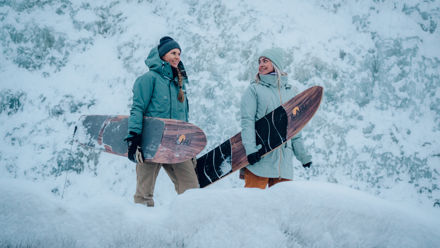 Snow Surfing in Lapland on handmade Ilahu boards, guided for all levels