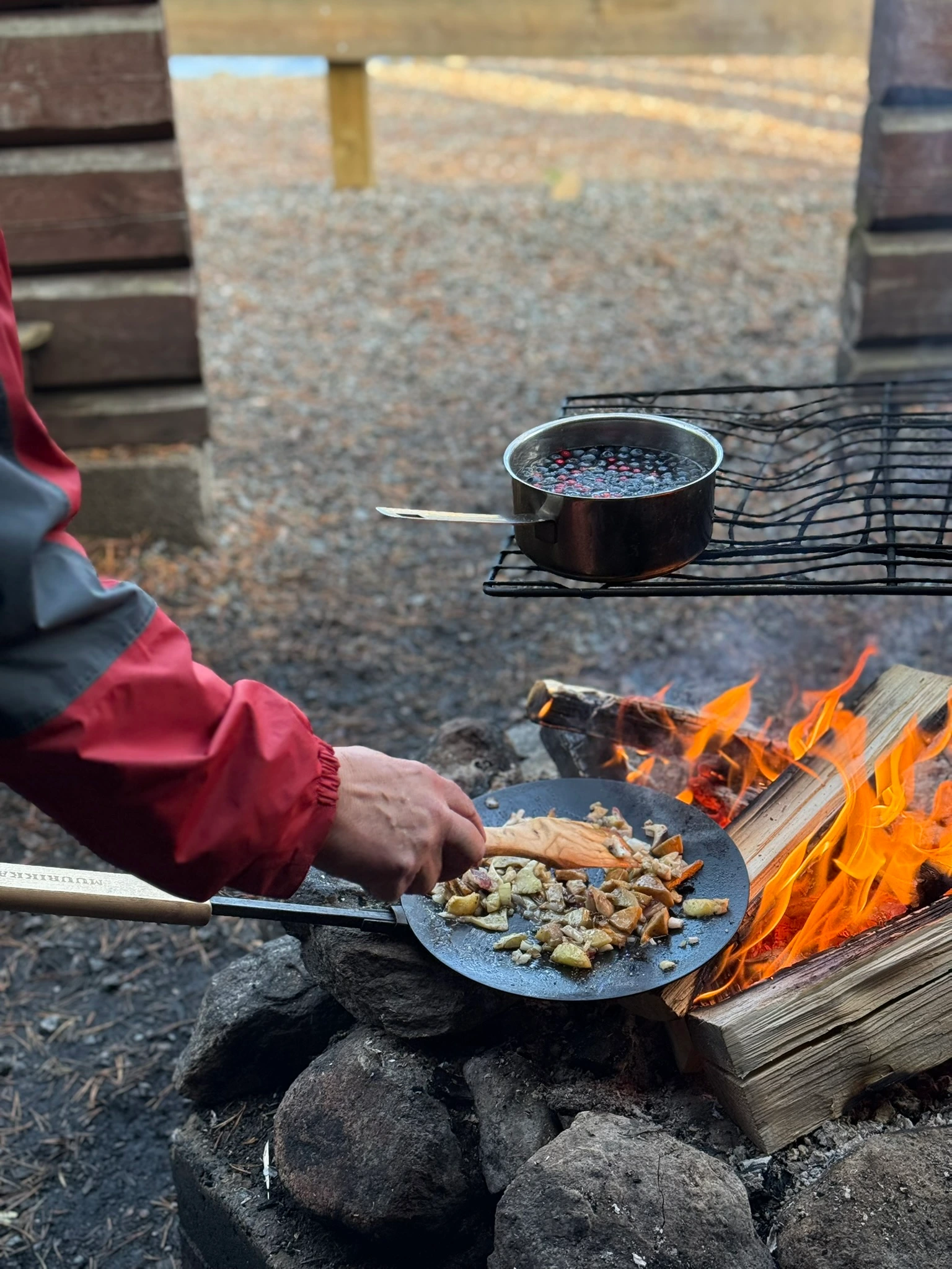 Après cette courte cueillette, vous apprenez les bases de la cuisine en extérieur : allumer un feu en toute sécurité, préparer des plats simples et savoureux avec des ingrédients locaux et cuisiner au feu de bois ou sur un réchaud selon le lieu. Vous profitez des sons de la forêt, des parfums de résine et du calme des paysages lapons.