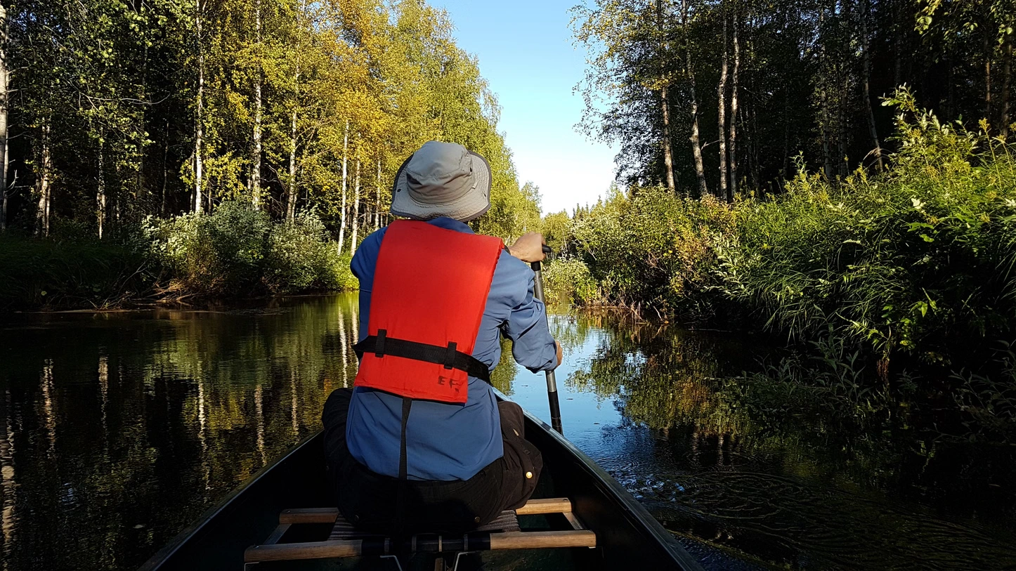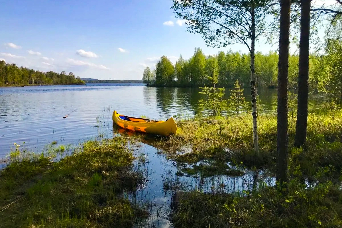 Le canoë et le kayak comptent parmi les plus belles façons d’explorer la nature lapone en été. Vous glisserez sur des lacs tranquilles, suivrez des rivières sinueuses et traverserez parfois de petits rapides, au rythme de vos coups de pagaie et du murmure de l’eau. Les paysages varient selon les lieux, entre rives boisées, collines et reflets du ciel nordique.