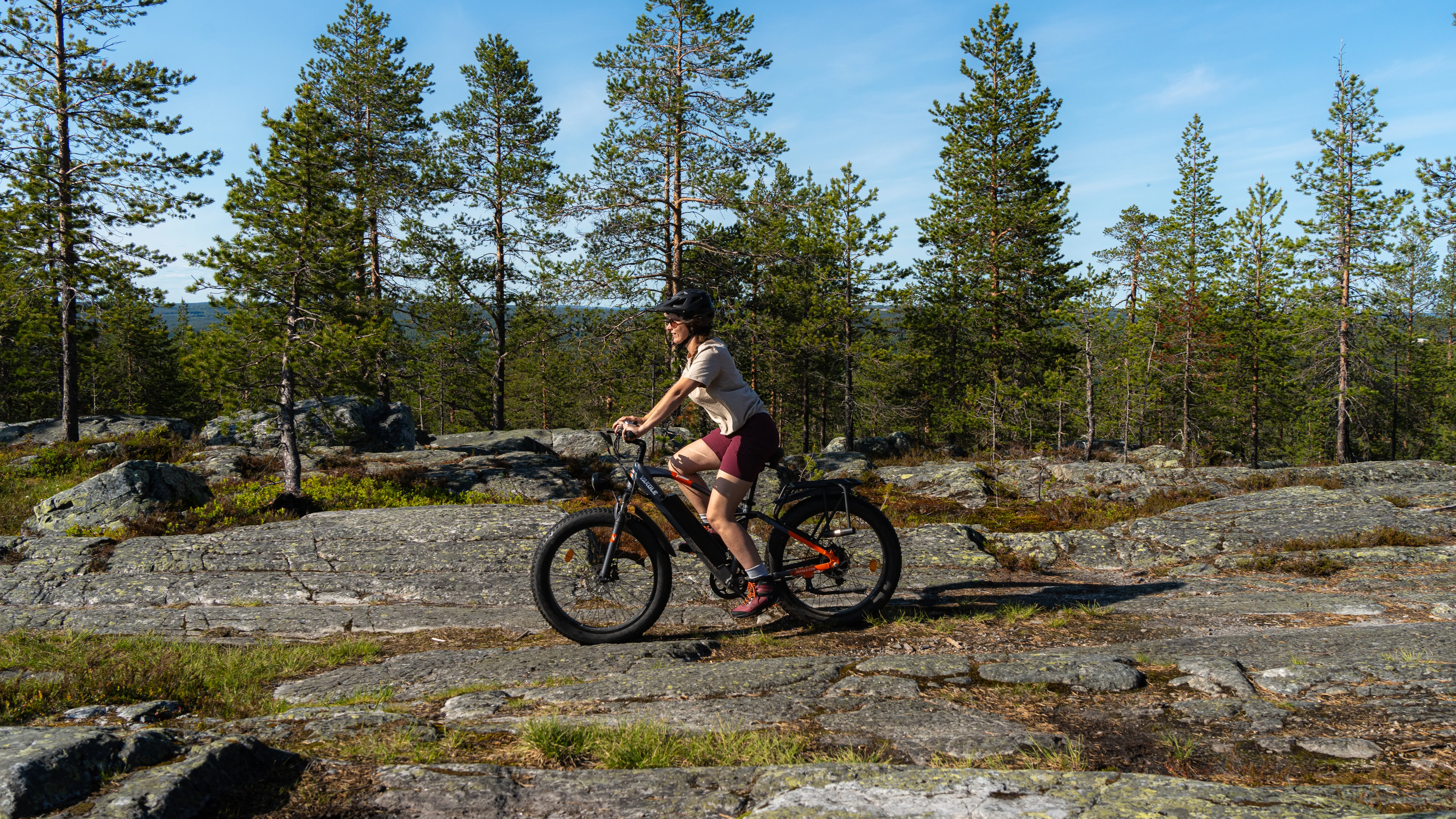 L’e-fatbike offre une manière fluide et agréable de découvrir la nature lapone, même sur terrains irréguliers ou vallonnés. Le moteur électrique accompagne votre effort, permettant de parcourir de longues distances sans fatigue tout en restant en contact avec l’environnement. Vous pourrez rouler tranquillement dans les forêts de pins, longer les rivières ou atteindre des points de vue panoramiques sans craindre la difficulté du parcours.