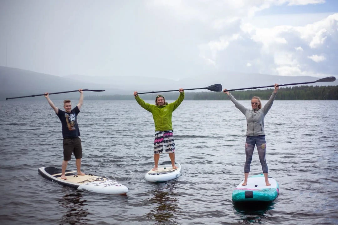 Le stand up paddle convient à tous les âges et niveaux. Les sessions peuvent durer une heure pour une introduction douce, ou s’étendre sur plusieurs heures pour inclure baignade, pauses détente ou exploration plus poussée. Facile à apprendre, agréable et polyvalent, le SUP fait partie des activités estivales les plus appréciées en Laponie.