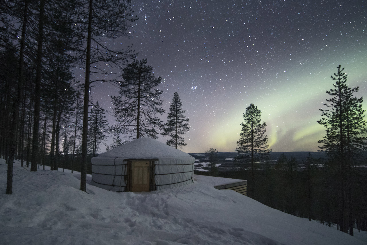 Ils incluent des cabanes perchées, des yourtes, des huttes d’Aurores Boréales ou encore des nuits en plein air face au ciel arctique. Ces séjours permettent une connexion directe avec la nature, offrant souvent des vues exceptionnelles sur les paysages enneigés et les aurores boréales. Leur caractère atypique séduit les voyageurs qui souhaitent sortir des standards habituellement proposés par les hébergements de vacances en Laponie.