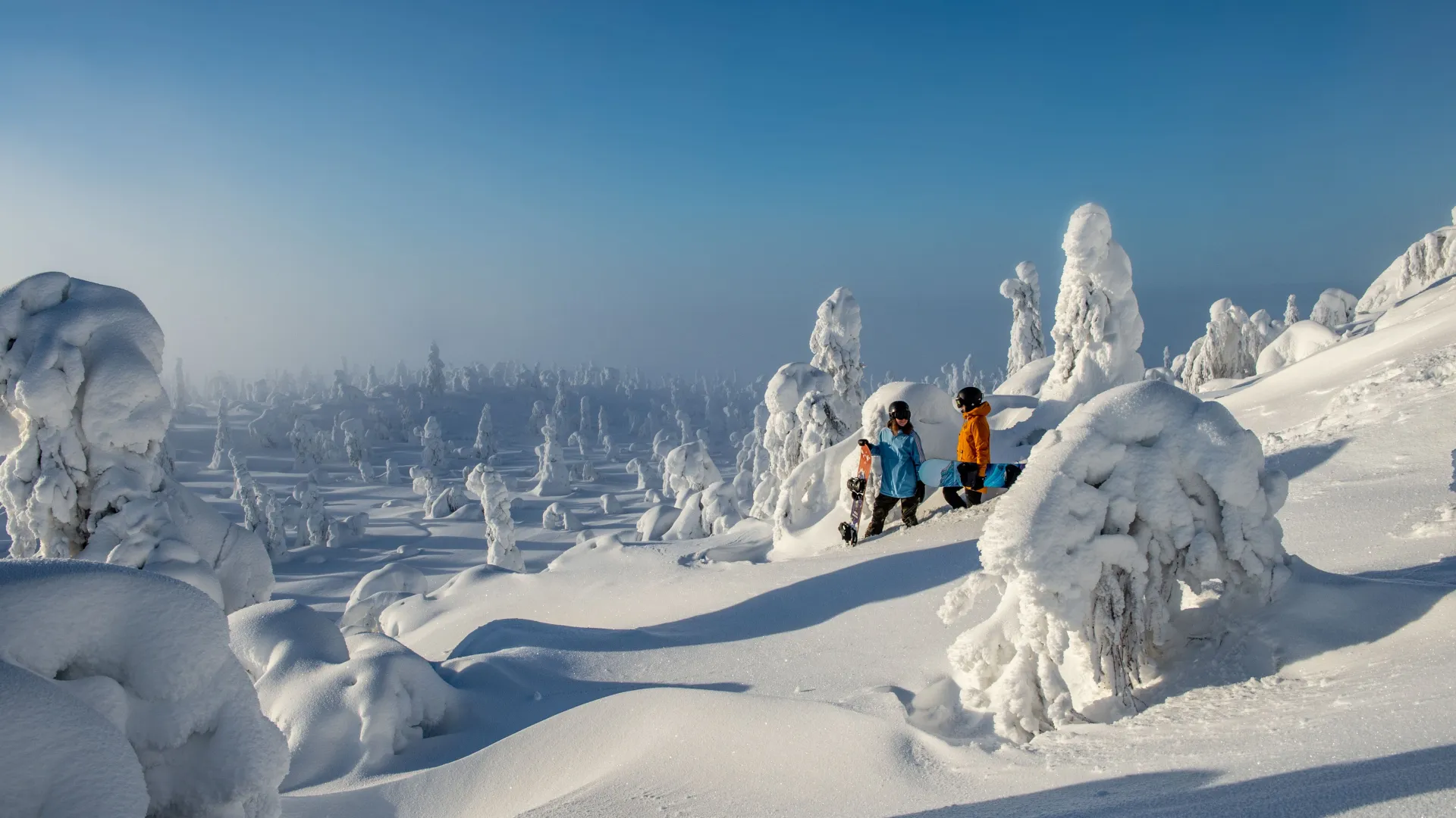Iso-Syöte, la colline la plus au sud de Finlande, est réputée pour ses paysages enneigés magnifiques et son large choix d'activités hivernales. Entourée du parc national de Syöte, elle offre une atmosphère paisible typique du cercle polaire, avec des vues panoramiques, une neige poudreuse et des hébergements chaleureux.