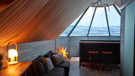 Arctic Land Adventure propose deux expériences d’hébergement uniques à Kilpisjärvi. Les igloos en verre sont situés sur le site reculé de l’élevage de rennes Vasara, en bordure du lac Peerajärvi. Chaque igloo comprend un lit king-size, deux lits d’appoint, une salle de bain privative, un minibar, une machine à café, le Wi-Fi et une télévision avec Netflix. En hiver, le séjour inclut la demi-pension avec petit-déjeuner et dîner. En été, seul le petit-déjeuner est inclus. Un sauna traditionnel et un bain à remous extérieur avec vue dégagée peuvent être réservés séparément. Grâce à leur emplacement isolé et à leur structure vitrée, les igloos sont parfaits pour admirer les aurores boréales ou le soleil de minuit dans une intimité totale.