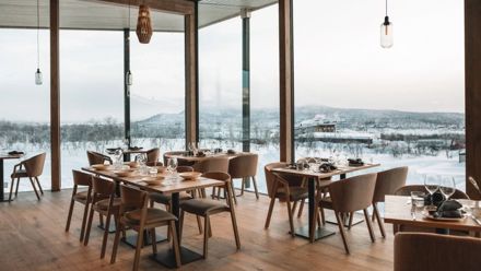 Le restaurant de l’hôtel sert une cuisine élaborée à partir de produits locaux, dans une salle à manger paisible offrant une vue dégagée sur les montagnes. Les clients peuvent opter pour la formule petit-déjeuner, demi-pension ou des repas à la carte. Une épicerie se trouve également à quelques minutes à pied. Grâce à son design épuré, à son cadre naturel et à sa situation idéale pour les voyageurs circulant entre la Finlande et la Norvège, le Santa’s Hotel Rakka constitue un excellent point de départ pour explorer les paysages uniques du nord de la Laponie.