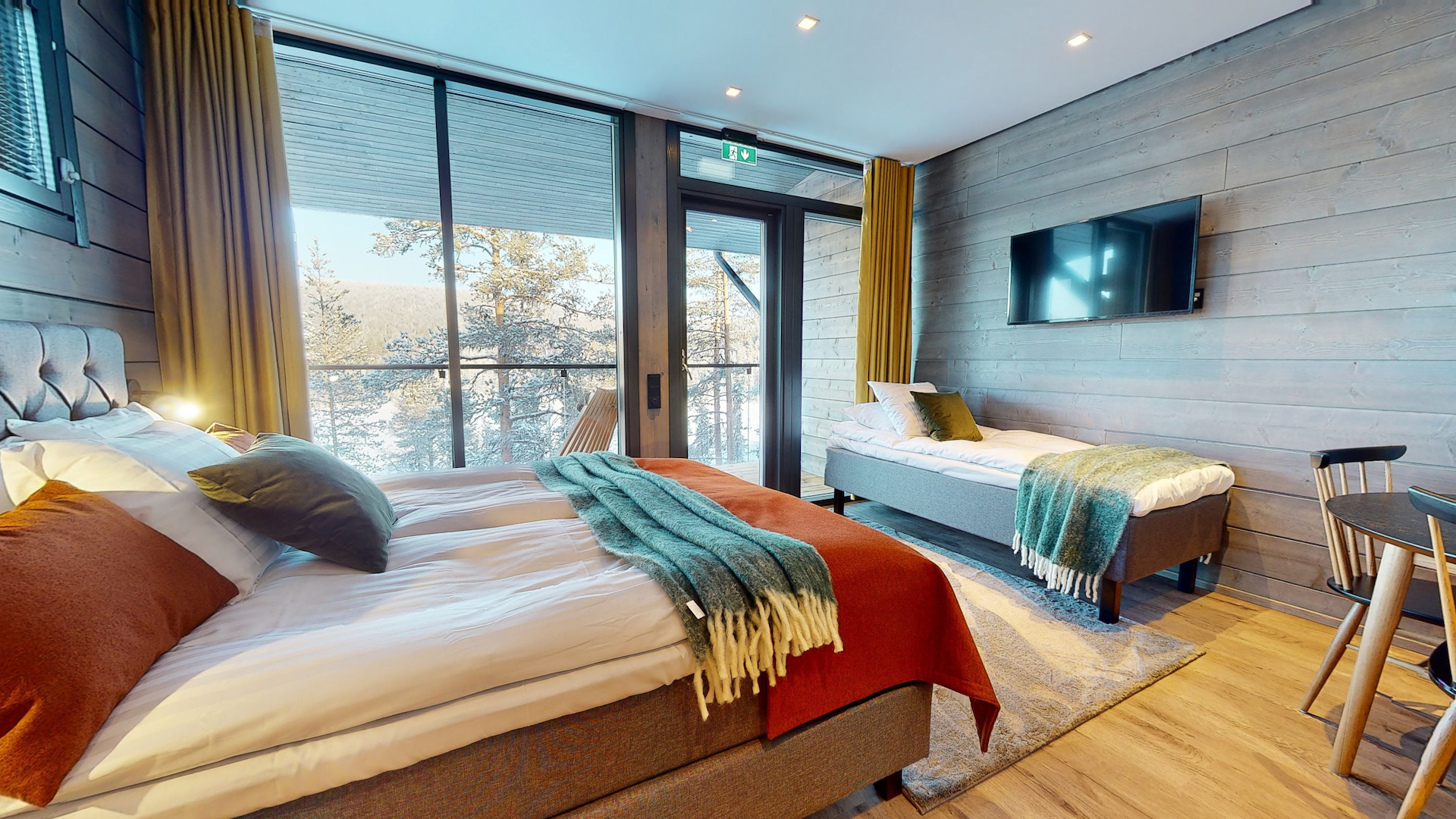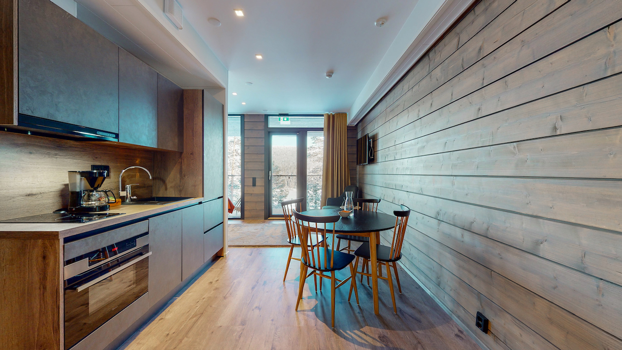 Niché sur les rives du lac Pyhäjärvi, le Kurula's Resort allie des suites haut de gamme à un cadre paisible au bord du lac, au pied du Pyhä Fell. Conçues avec soin, elles disposent de fenêtres allant du sol au plafond, d'un sauna privé, d'une cuisine bien équipée et d'un salon séparé. Elles sont idéales pour les couples, les familles ou les petits groupes qui recherchent plus d'espace et d'intimité.