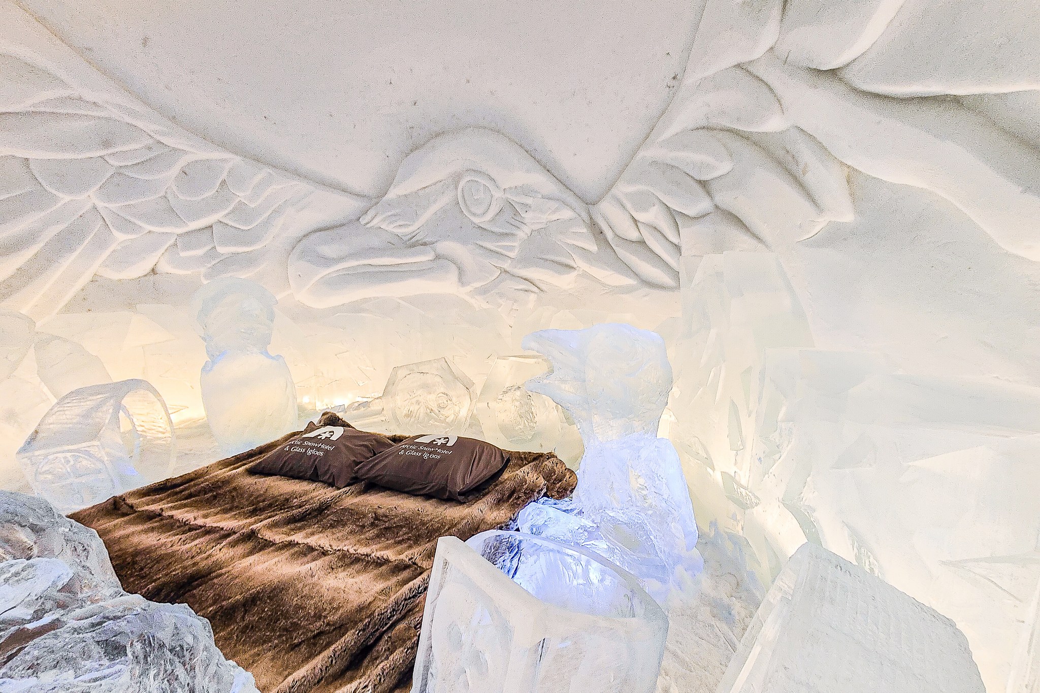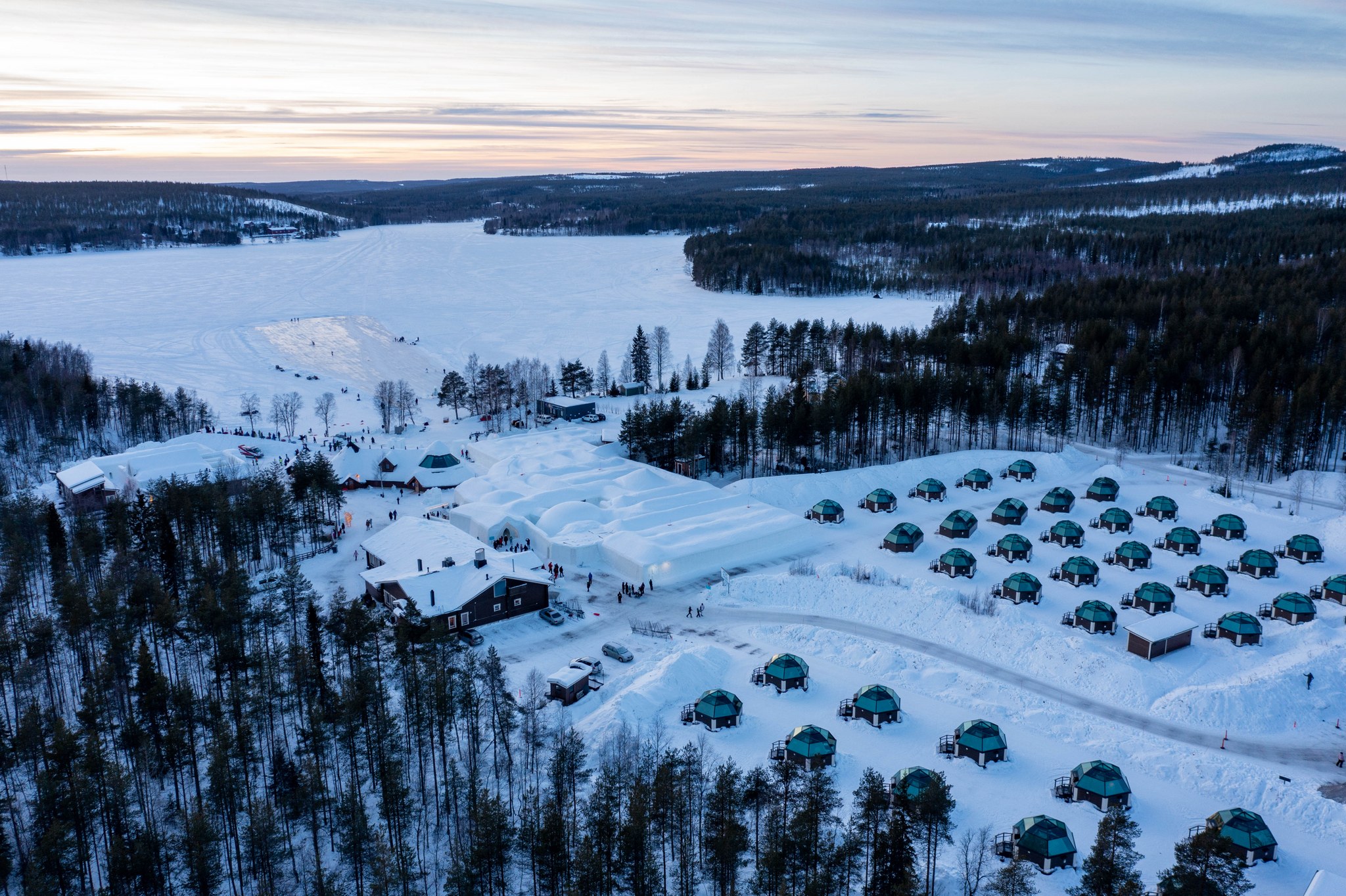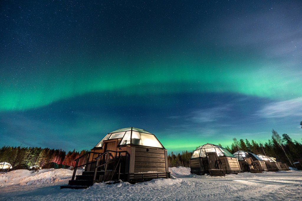 Situé à environ 30 km du centre-ville de Rovaniemi, l'Arctic SnowHotel invite les visiteurs à passer la nuit dans une magnifique structure de neige et de glace, avec des chambres sculptées à la main et des sculptures de glace. Pour ceux qui préfèrent la chaleur, le même site propose des igloos en verre bien équipés, avec des intérieurs chauffés et des toits transparents pour admirer le ciel arctique en tout confort.