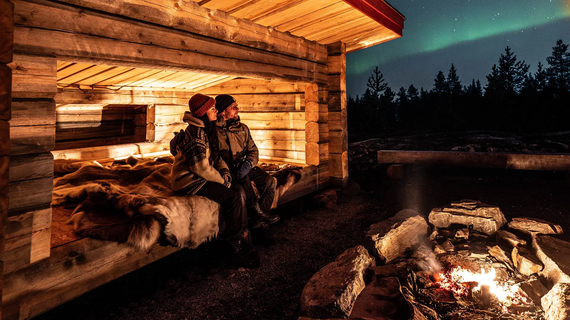 Ce séjour d'une nuit vous plonge dans l'univers authentique des éleveurs de rennes de Laponie. Vous passerez la soirée et la nuit dans un laavu traditionnel en bois, entouré de paisibles pâturages de rennes. Le laavu est équipé de sacs de couchage chauds en peau de renne pourvus d'une enveloppe intérieure douillette. Le feu de camp ajoute à l'atmosphère et au confort. Les doux sons de la nature sous un ciel arctique étendu complètent le sentiment de calme.
