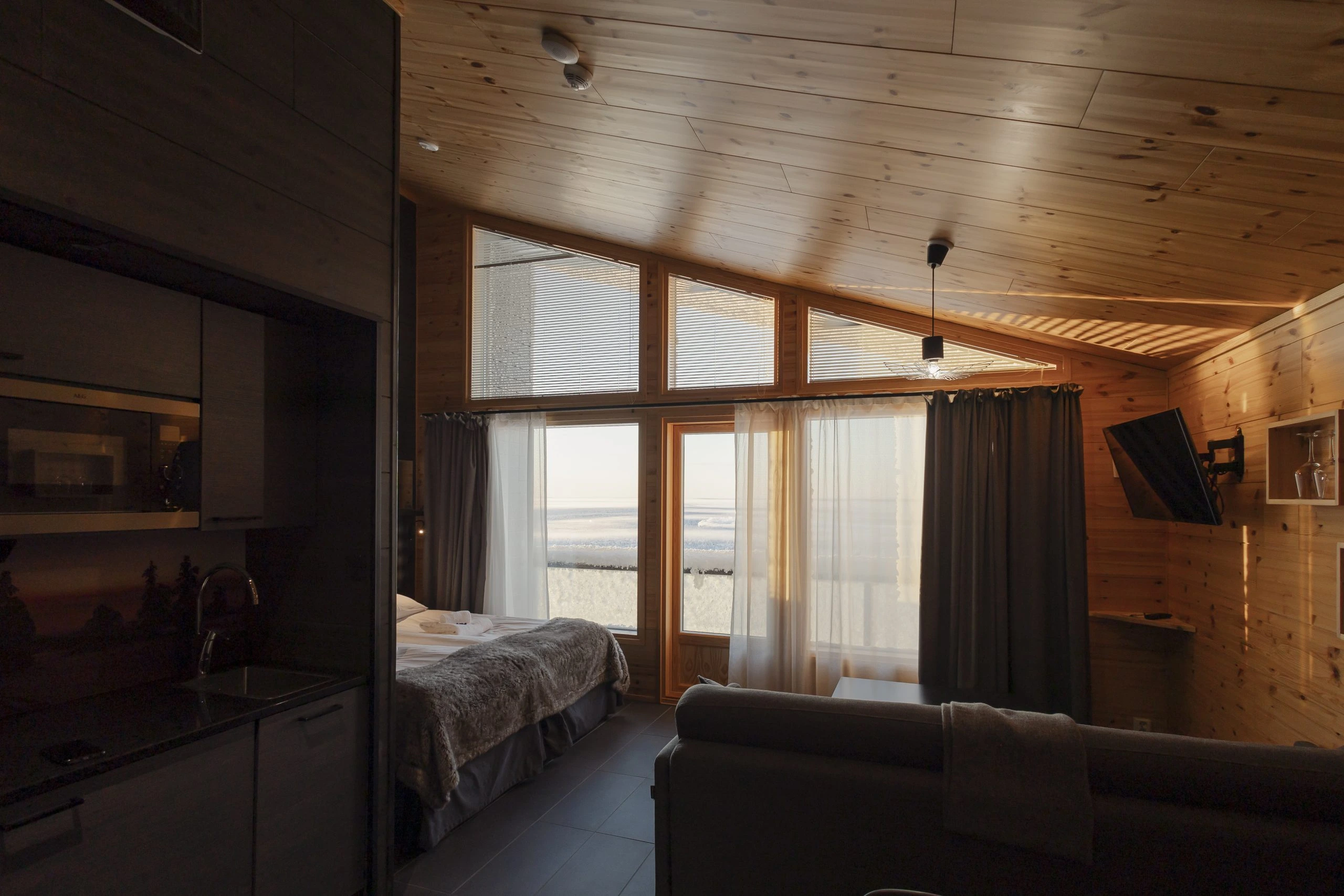 Les clients peuvent se détendre dans le sauna ou dans le bain à remous extérieur, et déguster une cuisine nordique de saison au restaurant, tout en profitant de panoramas sur la nature. Le lounge bar et la terrasse offrent des espaces chaleureux pour boire un verre au coin du feu ou contempler le ciel. Des luges et des raquettes sont mises à disposition des hôtes. Grâce à son accès direct aux paysages naturels, aux sentiers environnants et à un environnement calme, l’hôtel convient aussi bien aux couples qu’aux familles et petits groupes en quête de confort et d’authenticité en Laponie.