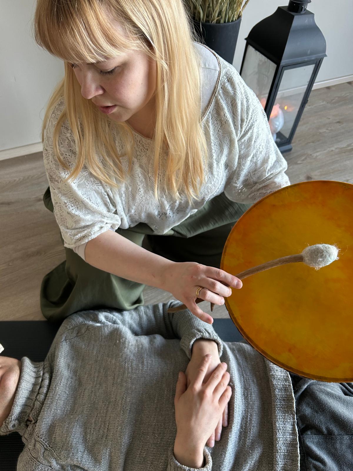 חוויה שלווה של שעה עם תיפוף עמוק ושירה אינטואיטיבית, המסייעת לשחרר מתחים ולהתחבר לרגע הנוכחי.