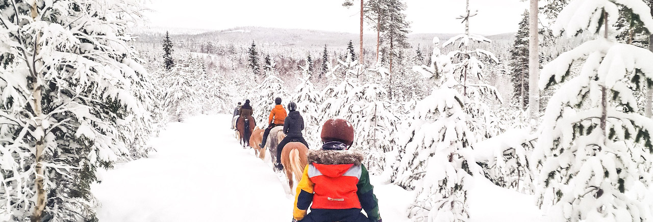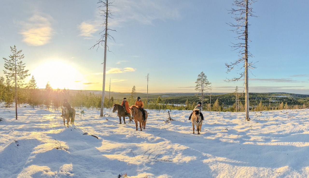 חוו רכיבה על סוסים בלפלנד בנופים מושלגים עוצרי נשימה. הצטרפו לסיורים מודרכים לבני 10 ומעלה, תיהנו משתייה חמה לאחר הרכיבה, ואולי תפגשו כלבים או חתולים ידידותיים בחווה.