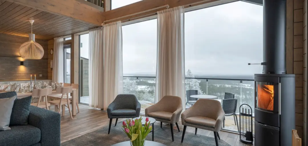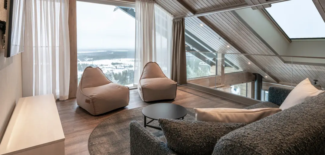 דירות וסוויטות מודרניות למרגלות המדרון בפוהה – עם סאונה פרטית, חלונות גדולים וגישה ישירה למסלולי הסקי והשירותים.