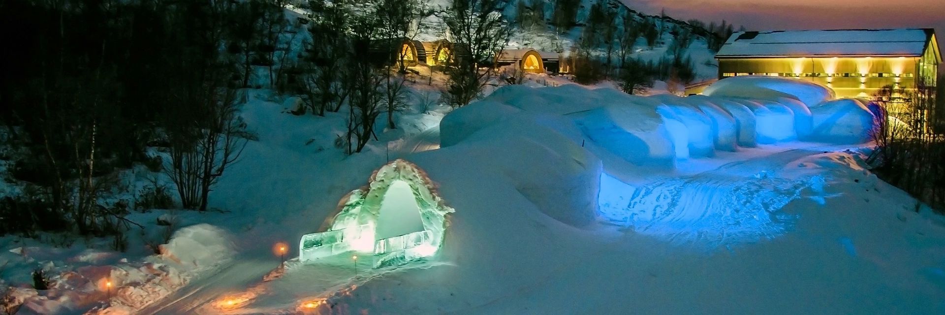סנוהוטל קירקנס מציע חוויית לינה ייחודית במלון קרח הפועל כל השנה, עם חדרים עשויים שלג וקרח או בקתות חמות בסגנון גאמה, ארוחות כלולות ואווירה ארקטית אותנטית.