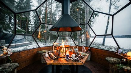 חוויה חורפית ייחודית המשלבת את יופיה הטבעי של לפלנד עם אירוח חם ואישי. איגלו זכוכית על שפת אגם מבודד מציע ארוחת ערב חמה בנוחות פנימית, מוקף יער מושלג ושמי הצפון.