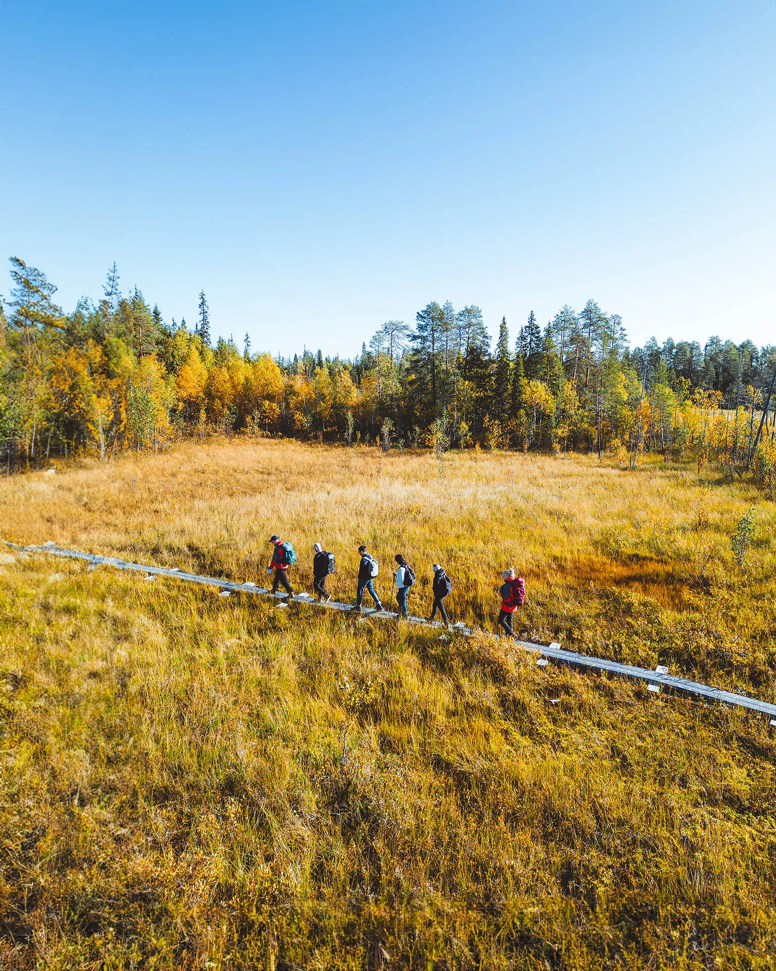 Located just a short distance from Rovaniemi, the Arctic Circle Hiking Area offers an easy yet rewarding way to explore Lapland’s wilderness. This protected region features a variety of trails that cross forests, marshlands, and gentle hills, making it perfect for both relaxed nature walks and more active hikes. During summer, the Midnight Sun lights up the landscape with endless daylight, while autumn brings the warm, golden tones of Ruska, creating a spectacular backdrop for outdoor exploration.