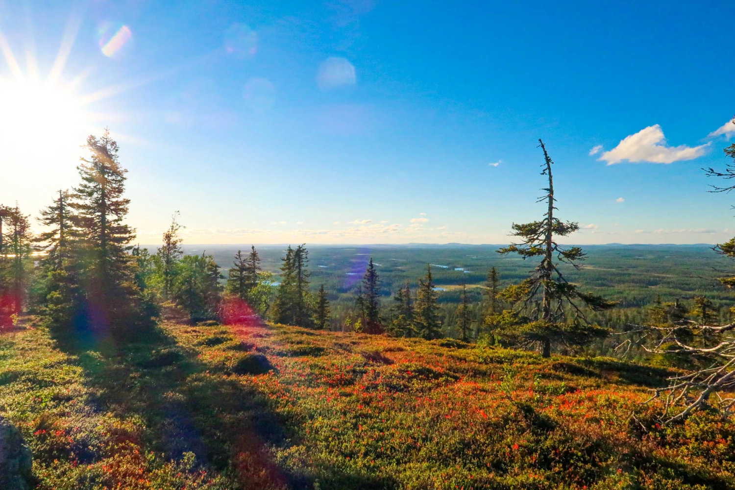 Riisitunturi National Park is one of Lapland’s most breathtaking hiking destinations, offering spectacular scenery throughout the warmer seasons. During summer, you’ll walk through lush forests filled with the scent of pine and the sound of birdsong, while autumn transforms the park into a mosaic of gold, orange, and red during Ruska. The open fells and panoramic views across Lake Kitkajärvi make this an ideal place for nature lovers, photographers, and anyone seeking peaceful immersion in Lapland’s wilderness.