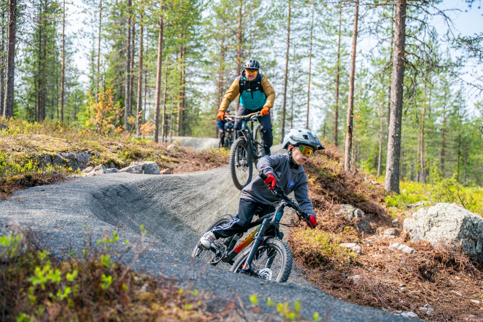 When the snow melts, Lapland’s ski resorts transform into world-class bike parks. With lifts running to the top of the fells, riders can enjoy gravity-powered descents on a wide range of trails designed for every skill level. Smooth flow tracks, technical forest routes, and high-speed downhill sections make each park a unique experience surrounded by the vast northern landscape.