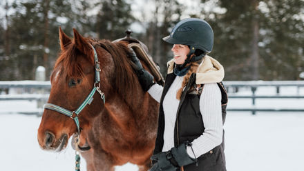 Winter Horseback Riding Winter Horseback RidingExperience winter horseback riding in Lapland through scenic snowy landscapes. Enjoy guided tours for ages 12 and up, warm drinks after the ride, and possibly meet friendly farm dogs or cats. Ideal for nature lovers.