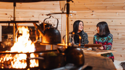 Kota Dinner Experience Kota Dinner ExperienceSavor a traditional Lappish Kota dinner in a private setting, featuring local ingredients and a cozy atmosphere. Optional sauna and cultural add-ons create a full Lappish evening experience.