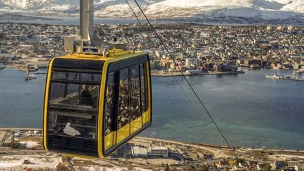 Tromsø Fjellheisen Cable Car Tromsø Fjellheisen Cable CarFjellheisen Cable Car offers a short and scenic ride from Tromsdalen to the Storsteinen mountain ledge, rising 421 meters above sea level. With panoramic views over Tromsø and its surrounding islands, this experience is a must if you are looking to enjoy Arctic landscapes from above.