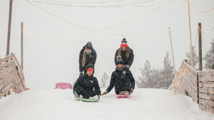Tobogganing TobogganingExperience the excitement of tobogganing in Lapland, from family-friendly hills to the longest toboggan slope in Finland. Rent a sled or bring your own and enjoy this classic winter activity.